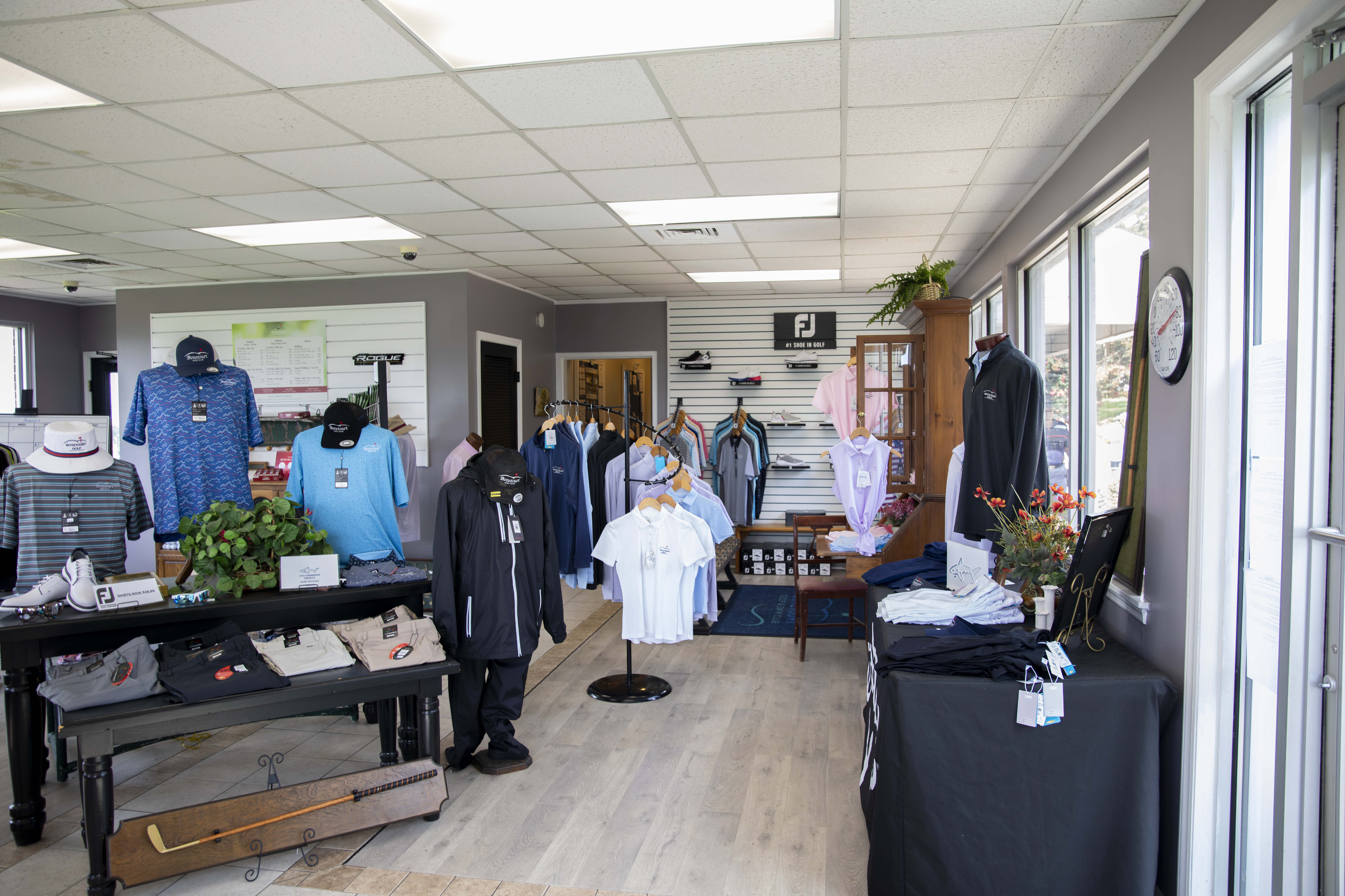 Boutetourt Golf & Swim Club offers the best in equipment and apparel to compliment your game. Stop by our fully-stocked Pro Shop before or after your round and browse through name brands. Our friendly staff will help you make start times, rent golf carts, sign up for club storage, and register you and your guests before each round of golf. An excellent selection of golf clubs and related merchandise are sold in the golf shop and golf lessons are available. Contact the Pro Shop at (540) 992-1451 for assistance, or to make an appointment for lessons.